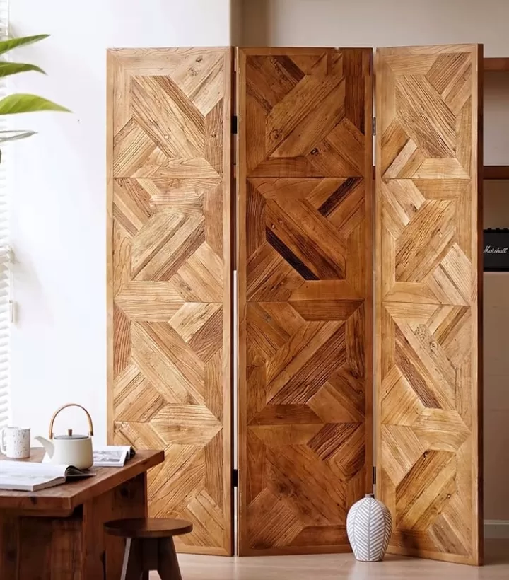 يمزج هذا الساتر الخشبي بين الجمال الطبيعي والوظيفة، بتصميم هندسي يمنح كل درفة طابعًا زخرفيًا جذابًا. سهل الطي والتحريك، ما يجعله مثاليًا لتقسيم المساحات المفتوحة مثل الصالات أو المداخل، أو كعنصر خصوصية مؤقت في غرف المعيشة أو النوم. إنه من أفضل حلول البارشن الخشبي الداخلي الذي يناسب الديكورات العصرية والكلاسيكية.