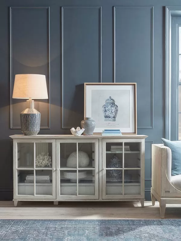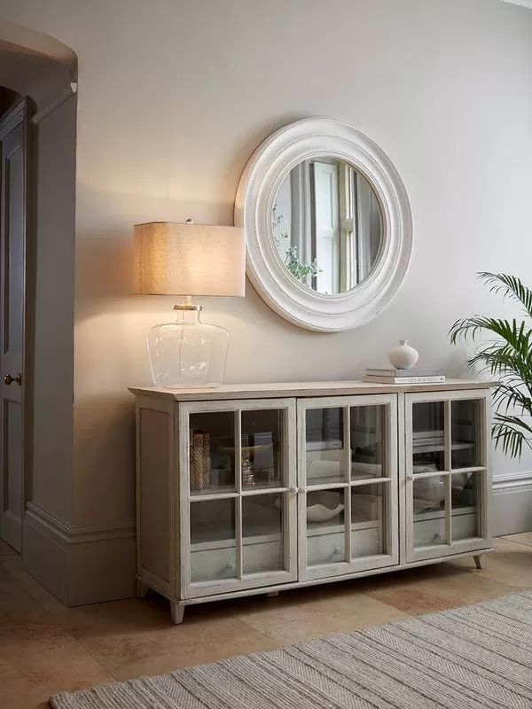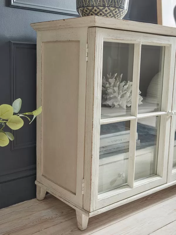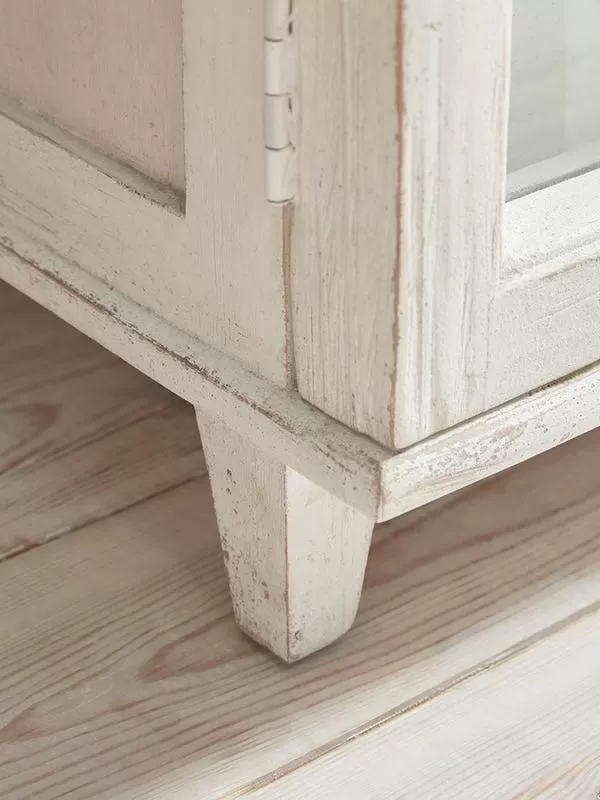 لإطلالة هادئة وتنظيم عملي، يأتيك دولاب بوفية أبيض بتصميم كلاسيكي بسيط يضفي لمسة نور وأناقة على أي مساحة داخلية. يتميز هذا الدولاب بواجهة زجاجية مقسّمة بأطر خشبية تمنح القطعة طابع النوافذ الريفية التقليدية، مع تشطيب أبيض مطفي يبرز جمال التفاصيل.