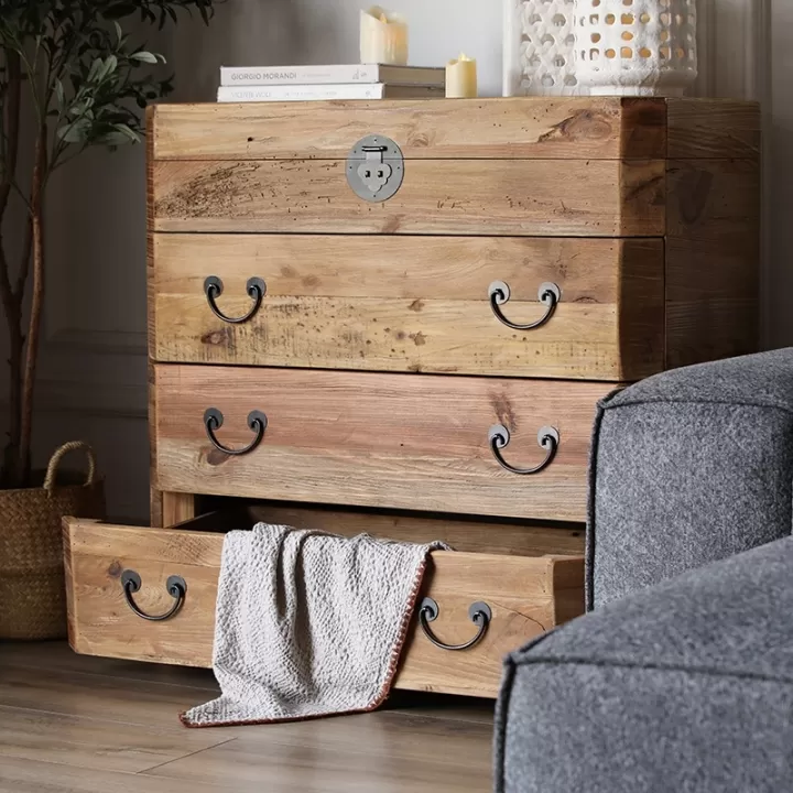 دولاب تخزين خشب مزود بعدة أدراج واسعة لتوفير مساحة تخزين منظمة وعملية.
