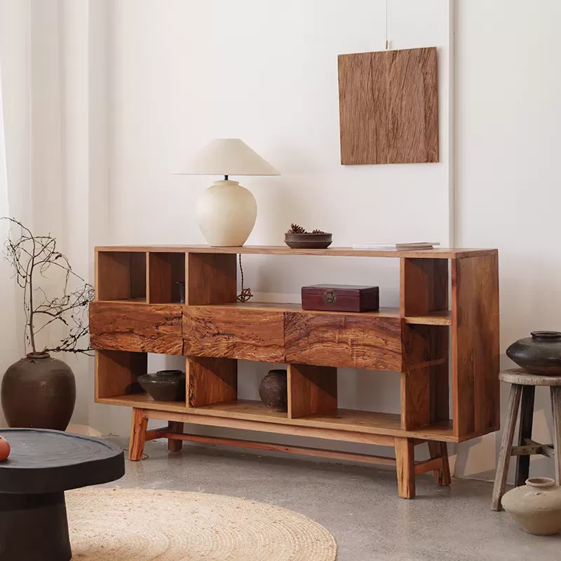 ارتقِ بتفاصيل منزلك مع دولاب خشب ريفي مصمم ليجمع بين جمال الخشب الطبيعي والوظائف الذكية. يأتي هذا الدولاب بطابع هندسي دقيق، يجمع بين الرفوف المفتوحة والأدراج المغلقة، ما يمنحه حضورًا مميزًا في أي مساحة داخلية.