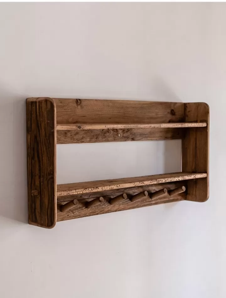 • اسم المنتج: رف قهوة جداري من خشب الصنوبر مع ستة علاقات.