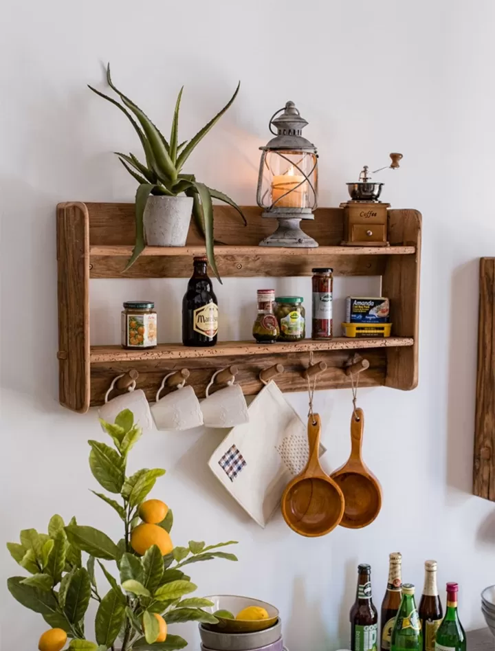 • رف قهوة خشب سهل التركيب والتثبيت على الجدار مما يجعله خيارًا عمليًا لمحبي الديكورات الطبيعية.