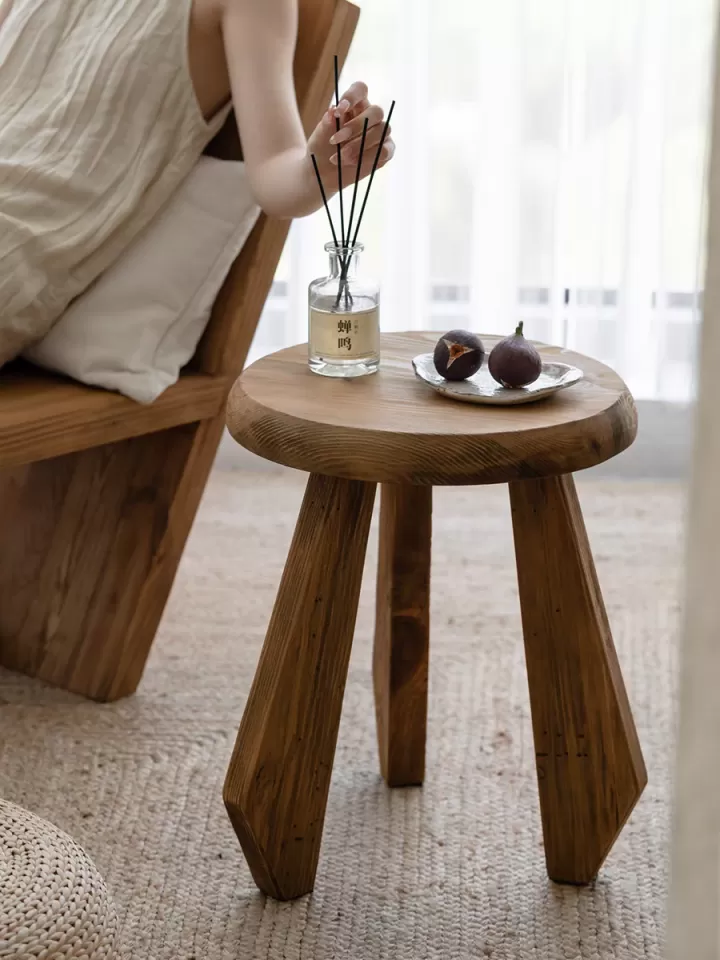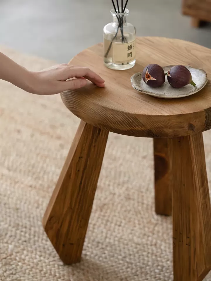 التصميم: دائري بثلاثة أرجل خشبية منحوتة