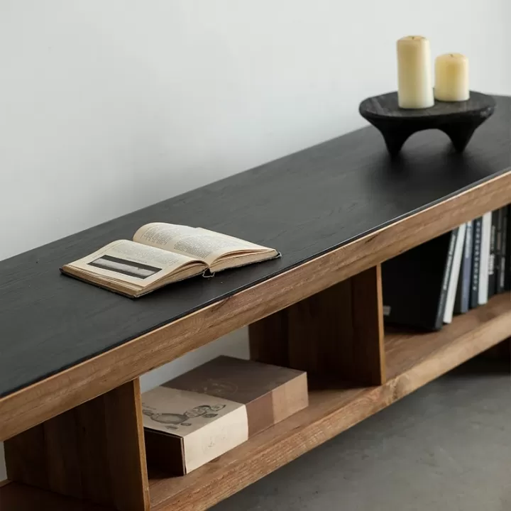 طاولة تلفزيون خشب طبيعي مصنوعة من أجود أنواع الخشب لتضمن المتانة والاستدامة لسنوات طويلة.