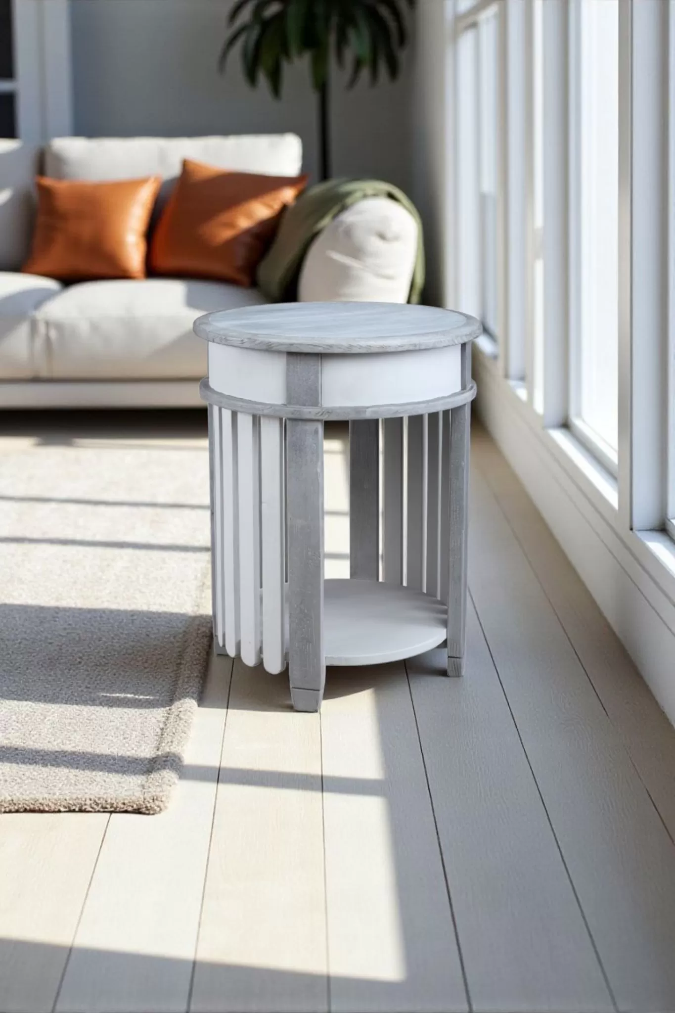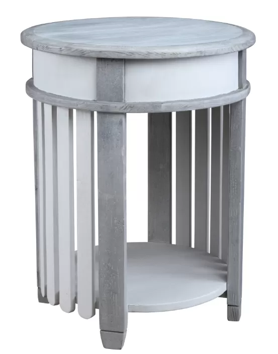 تم تصميم هذه الطاولة الجانبية بعناية لتكون قطعة عملية وفنية في آنٍ واحد. القوائم الرأسية تضيف إحساسًا بالانسيابية والتهوية، بينما يوفر السطح الدائري مساحة كافية لوضع المشروبات أو الكتب أو عناصر الديكور. قاعدة التخزين السفلية تضيف جانبًا وظيفيًا يعزز من فاعلية الطاولة.