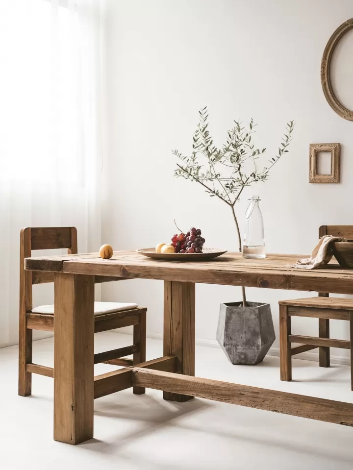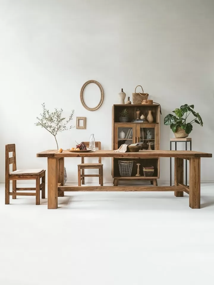 امنح مساحة الطعام في منزلك طابعًا دافئًا بفضل طاولة طعام كبيرة مصنوعة بالكامل من الخشب الطبيعي. تصميمها الريفي البسيط يعكس أصالة التصميم ويمنح الأجواء المحيطة إحساسًا بالراحة والهدوء، مما يجعلها خيارًا مثاليًا لتجمعات العائلة الكبيرة أو المناسبات الخاصة.