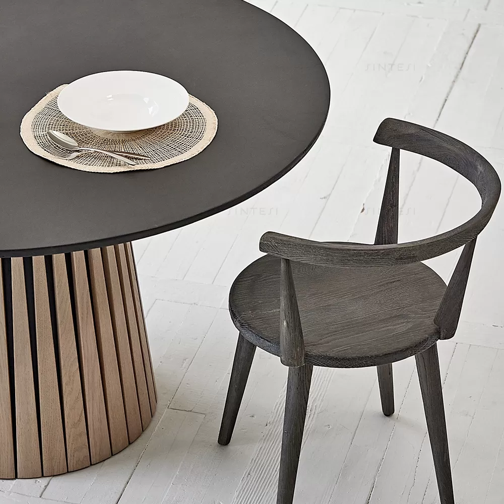 اكتشف التوازن المثالي بين العملية والأناقة مع طاولة طعام صغيرة بقطر 130 سم، صُممت لتكون محورًا للدفء والانسجام في جلساتك اليومية. تجمع هذه الطاولة بين سطح داكن أنيق وقاعدة خشبية نحتية بتفاصيل عمودية فريدة، ما يجعلها واحدة من أبرز القطع ضمن تشكيلتنا الحديثة من طاولات الطعام.
