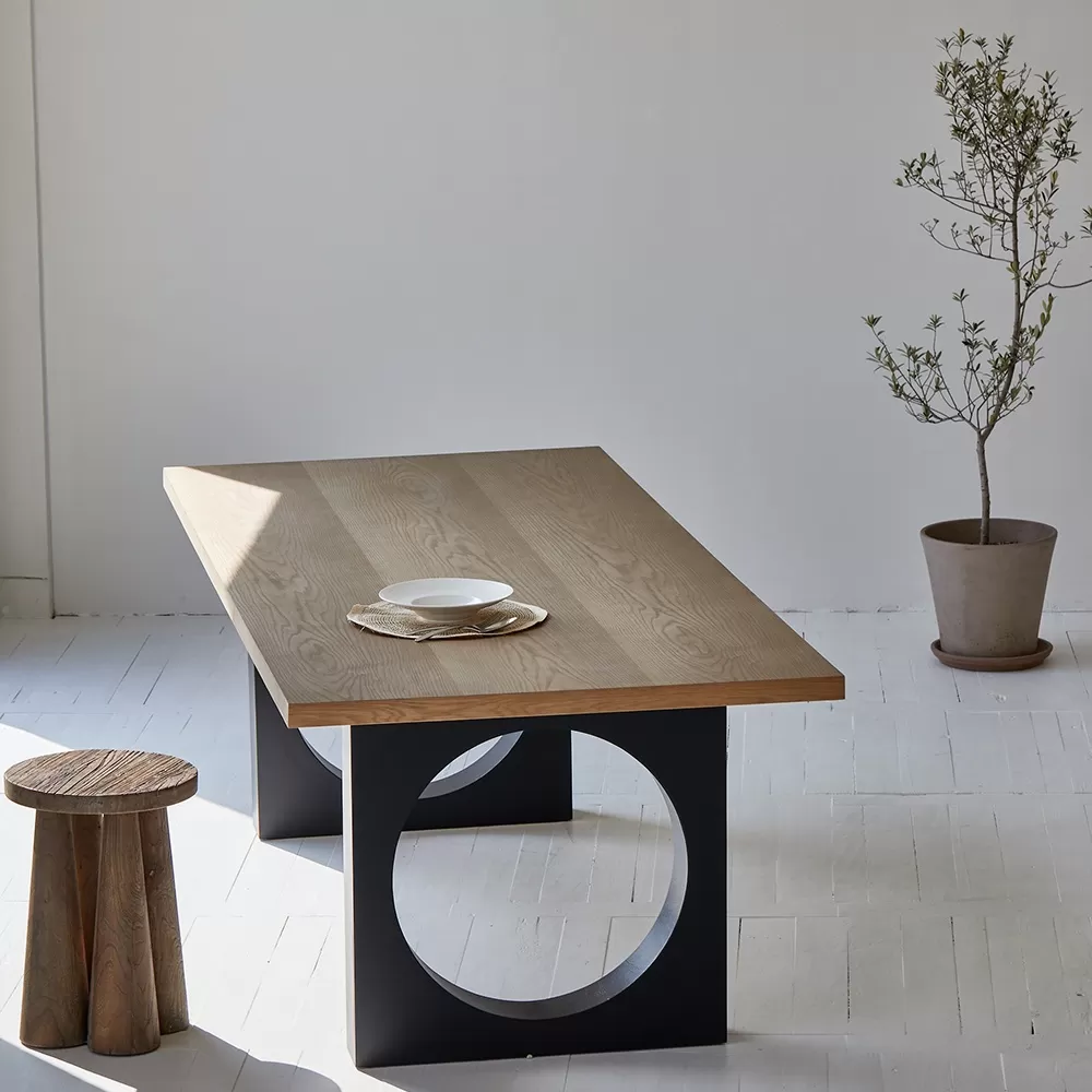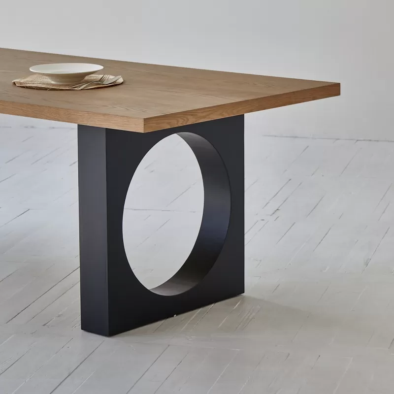 إذا كنت تبحث عن قطعة أثاث تتميز بالرحابة، الجمال، والتصميم الفريد، فإن طاولة طعام كبيرة هي الخيار الأمثل. بتصميم معاصر وأرجل هندسية مفرغة مستوحاة من الفن المعماري، تمنح هذه الطاولة مساحتك لمسة فنية مع الحفاظ على الوظيفة العملية. سطحها الخشبي الفاخر بلونه الطبيعي يضيف إحساسًا بالدفء والرقي في آنٍ واحد.