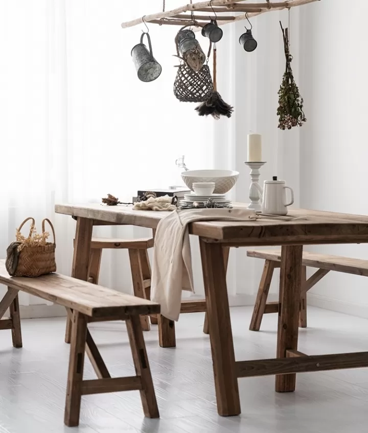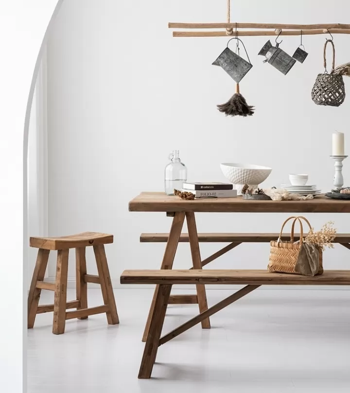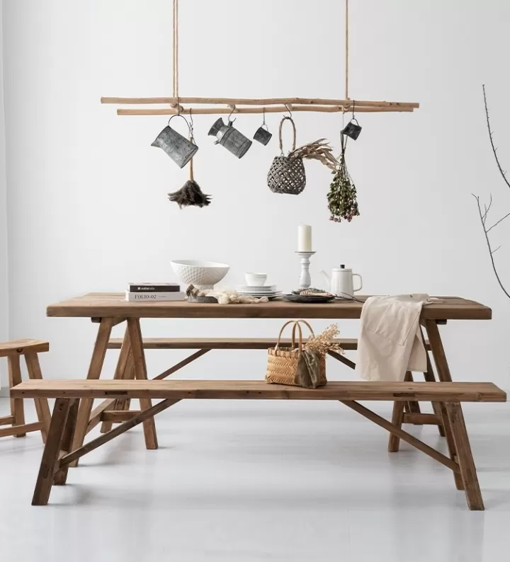 طاولة طعام خشب تعد إضافة رائعة لديكور المطبخ أو غرفة الطعام مما يعزز من جمالية المكان.