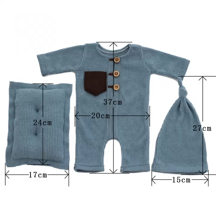 ثيم مكون من ثلاثة قطع (قبعة + يجامة + مخدة) دعائم تصوير مواليد