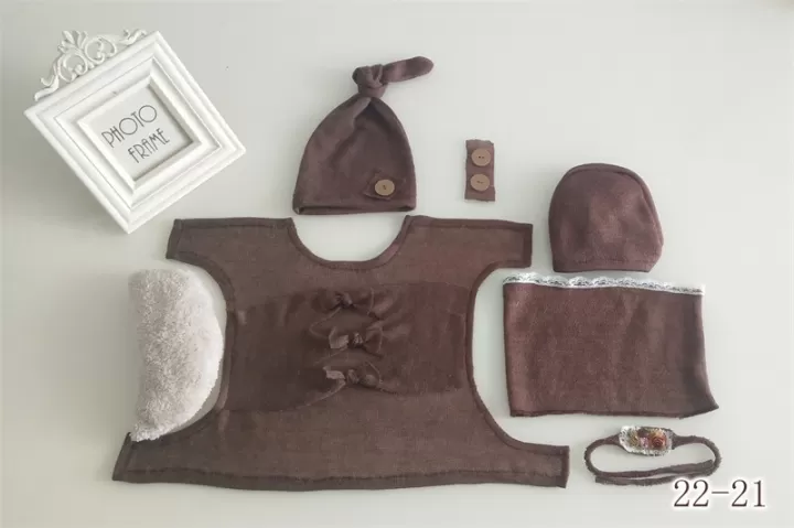طقم ملابس بولستر قميص + مخدة + مشد + حزام + قبعة + مشد للارجل لتصوير المواليد