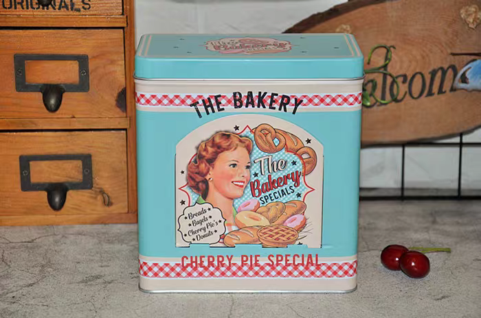 نظّم مطبخك بأسلوب مميز مع هذه علبة تخزين معدنية مربعة ذات التصميم الكلاسيكي الجذاب. تأتي العلبة بلون أزرق فاتح ونقوش مستوحاة من طراز أيام زمان، ما يجعلها مثالية لمحبي التفاصيل العتيقة التي تضيف دفئًا وأناقة للمكان.