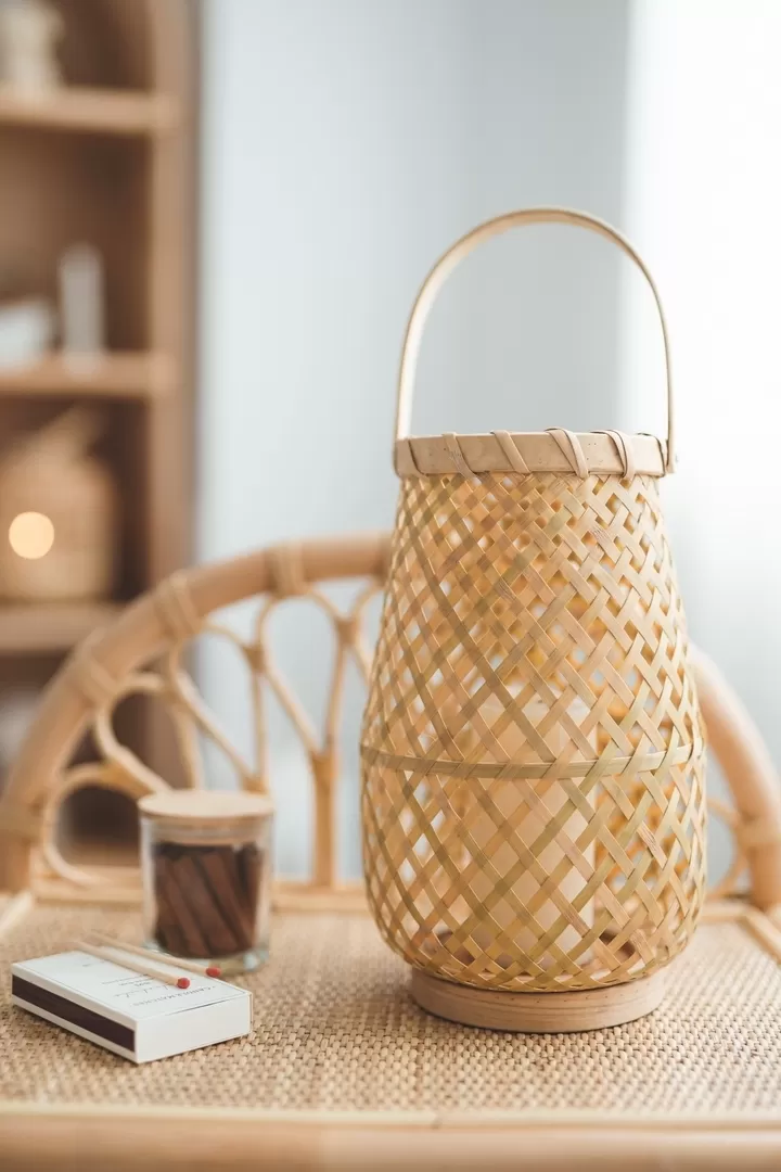 الخامة: خيزران طبيعي مضفور يدويًا + قاعدة راتان متينة