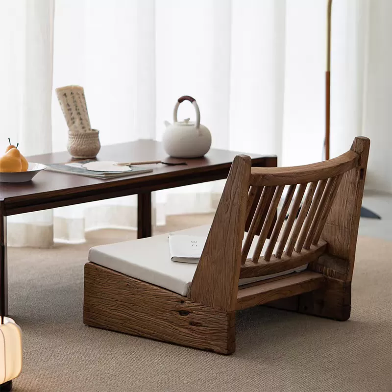 استمتع بالجلوس على كرسي ريفي مصمم بأسلوب مستوحى من البيوت الريفية اليابانية، منخفض القامة ليتناسب مع الطاولات الأرضية أو جلسات الاسترخاء. تم تصنيعه من خشب متين بمظهر طبيعي يعكس الجودة والدفء، مع ظهر مائل بتصميم مريح ووسادة ناعمة توفر دعمًا مميزًا للظهر.