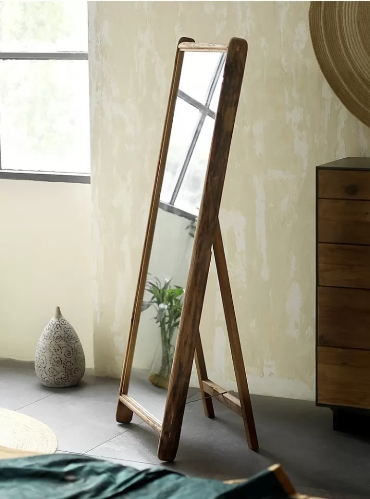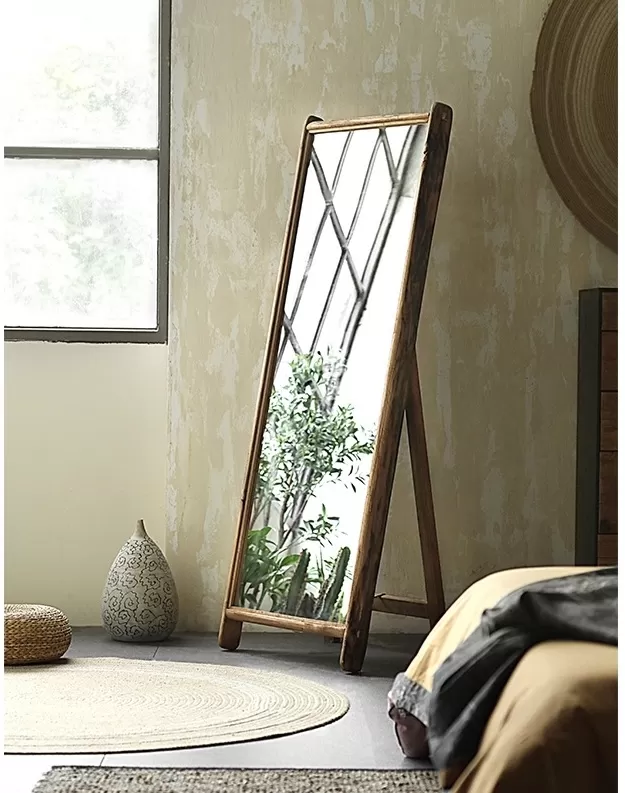 التصميم: مرآة أرضية قائمة بإطار خشبي طبيعي